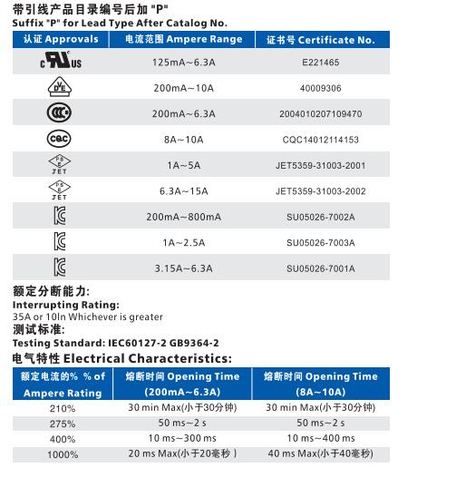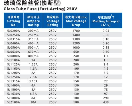 產品名稱: 5J Φ5.2×20玻璃保險絲管(快斷型)多國認證