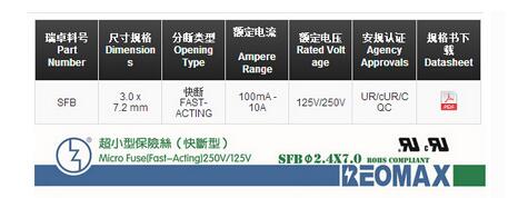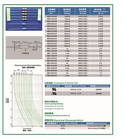 產品名稱: 電阻式保險絲SFB 3.0*7.2mm 環氧涂層(快斷型)