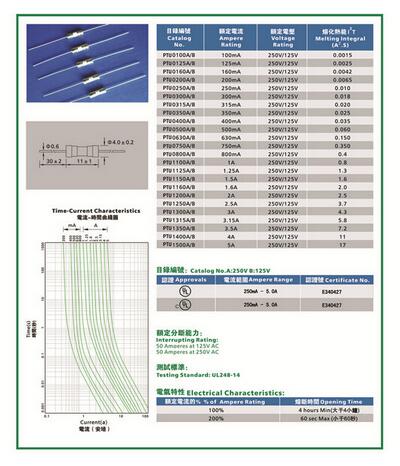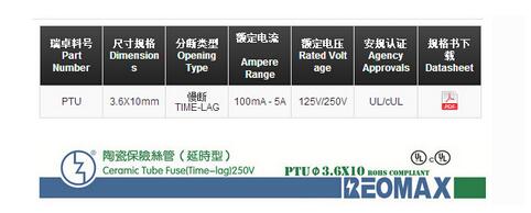 產品名稱: PTU 3.6*10陶瓷慢斷保險絲