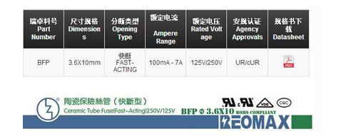 產品名稱: BFP 3.6*10陶瓷保險絲