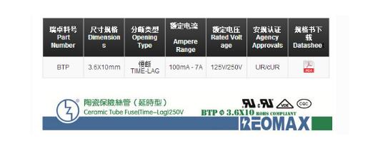 產(chǎn)品名稱: BTP 3.6*10 陶瓷慢斷保險(xiǎn)絲