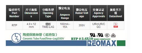 產品名稱: 電阻式保險絲RTP 4.0*12mm 350V 環氧涂層(延時型)