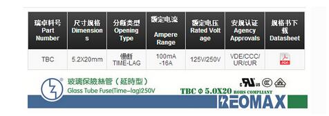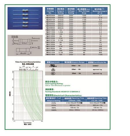 產品名稱: TBC 5.0*20玻璃慢斷保險絲