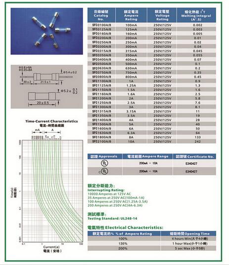產品名稱: SFC 5.2*20玻璃快斷保險絲