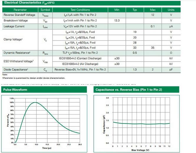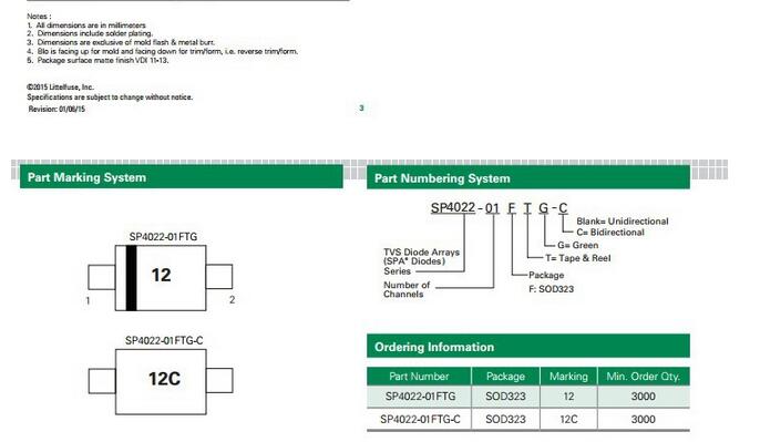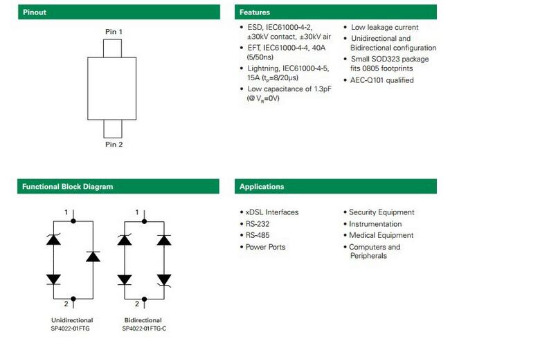 產品名稱: SP1004 Series 5pF 8kV bidirectional TVS Array