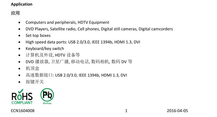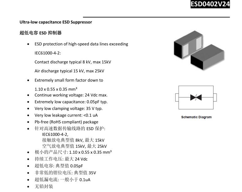簡(jiǎn)述: Base on Polymer Voltage Variable Material, for ESD protection with ultra-low capacitance. 0402(1005) chip size.