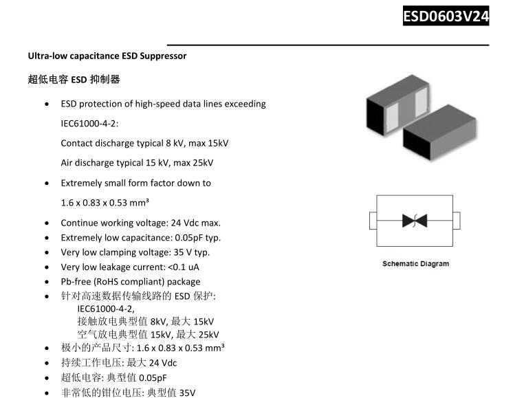 ESD0603V24規格書下載 ESD0603V12 規格書下載