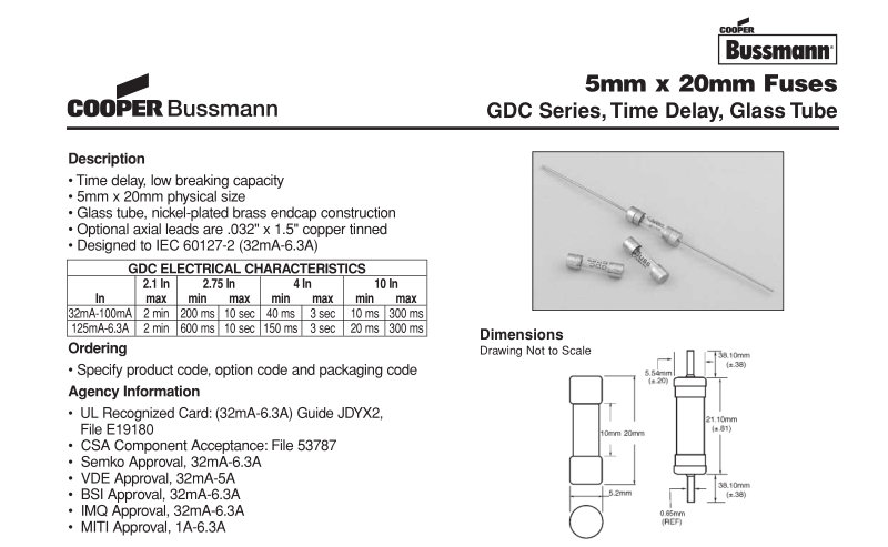 產品名稱: S506 bussman 5*20 玻璃管保險絲