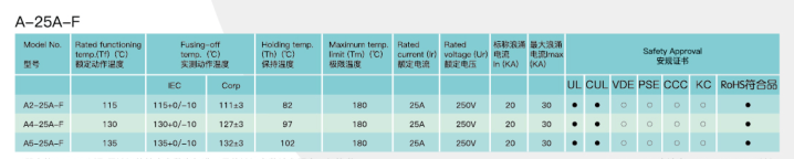 簡述: 溫度保險絲 方形25A 產品 UL認證