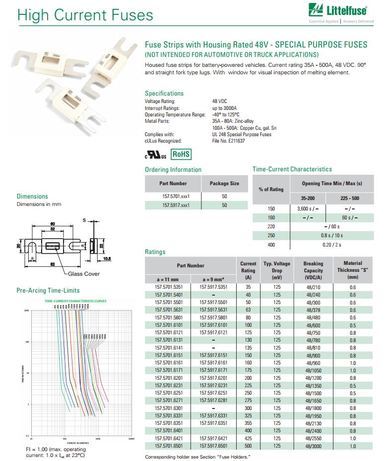 產品名稱: 157.5701 48V 系列 - 48V帶卡箍片狀保險絲 - 特殊用途保險絲