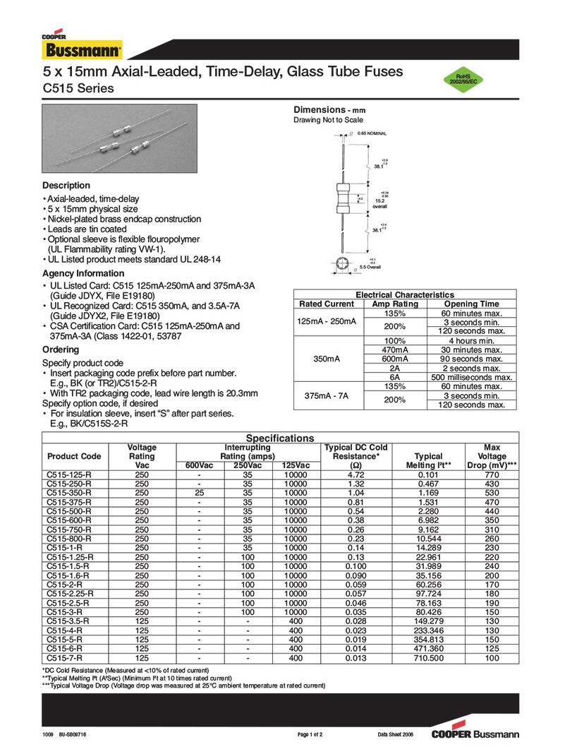 產品名稱: bussmann C515 玻璃管保險絲 型號規(guī)格齊全