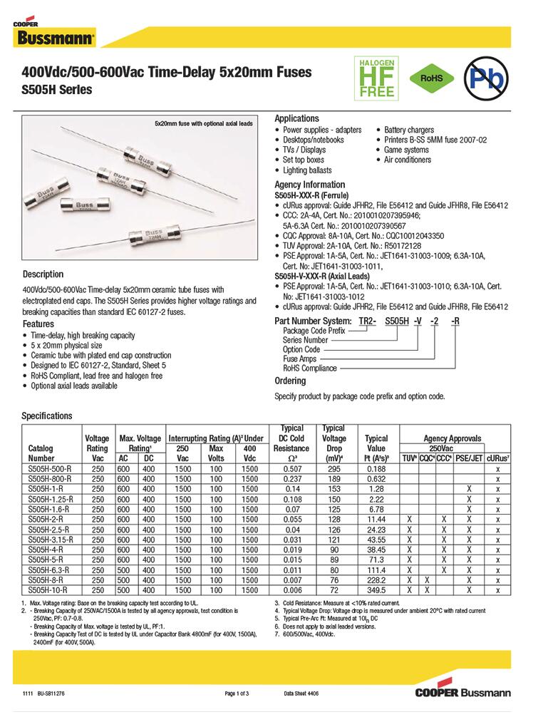 產品名稱: S505H 500VAC 5*20 高分斷 慢斷陶瓷