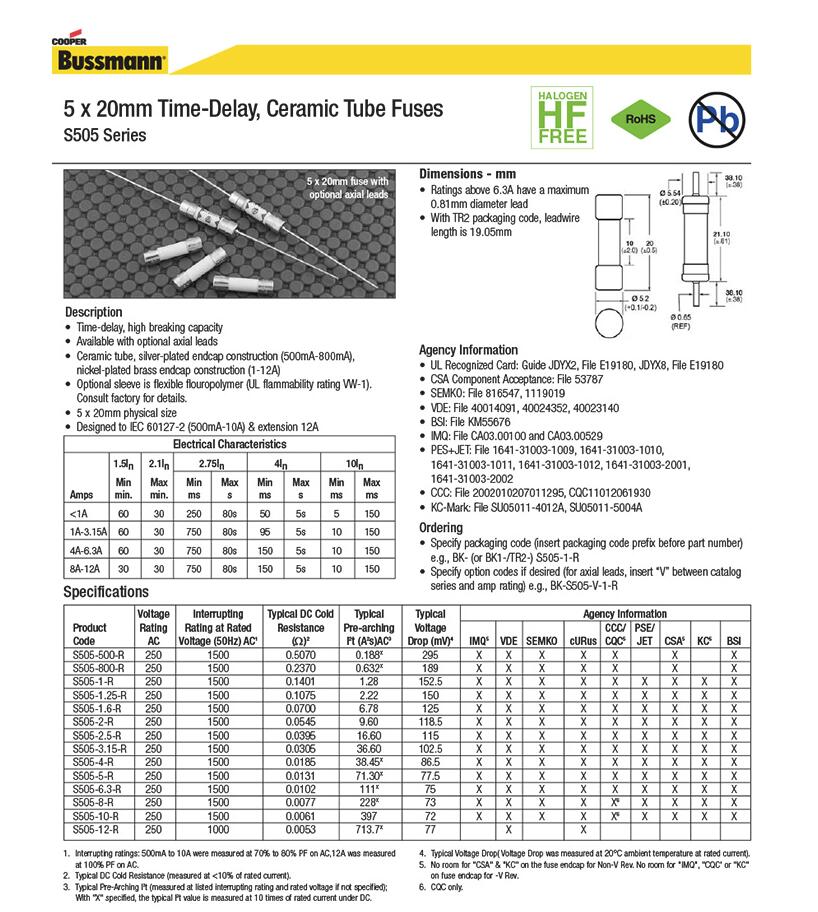 產品名稱: S505 慢斷 陶瓷管 電流保險絲