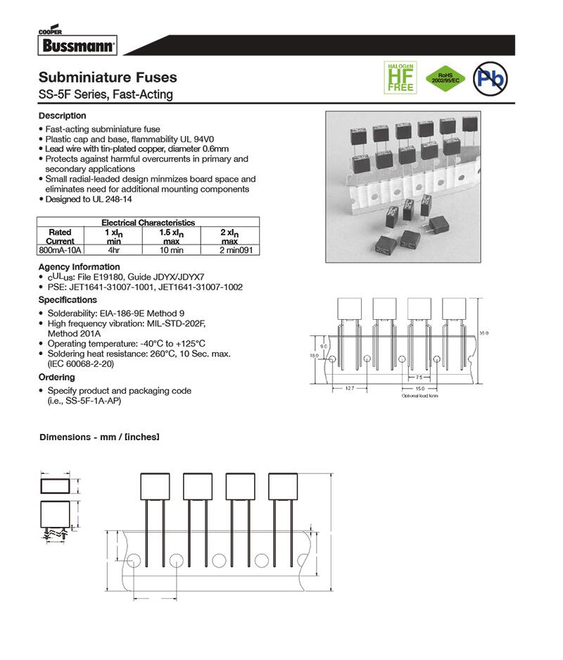 產品名稱: SS-5F-1A-AP 250V 快斷塑封 方形 保險絲