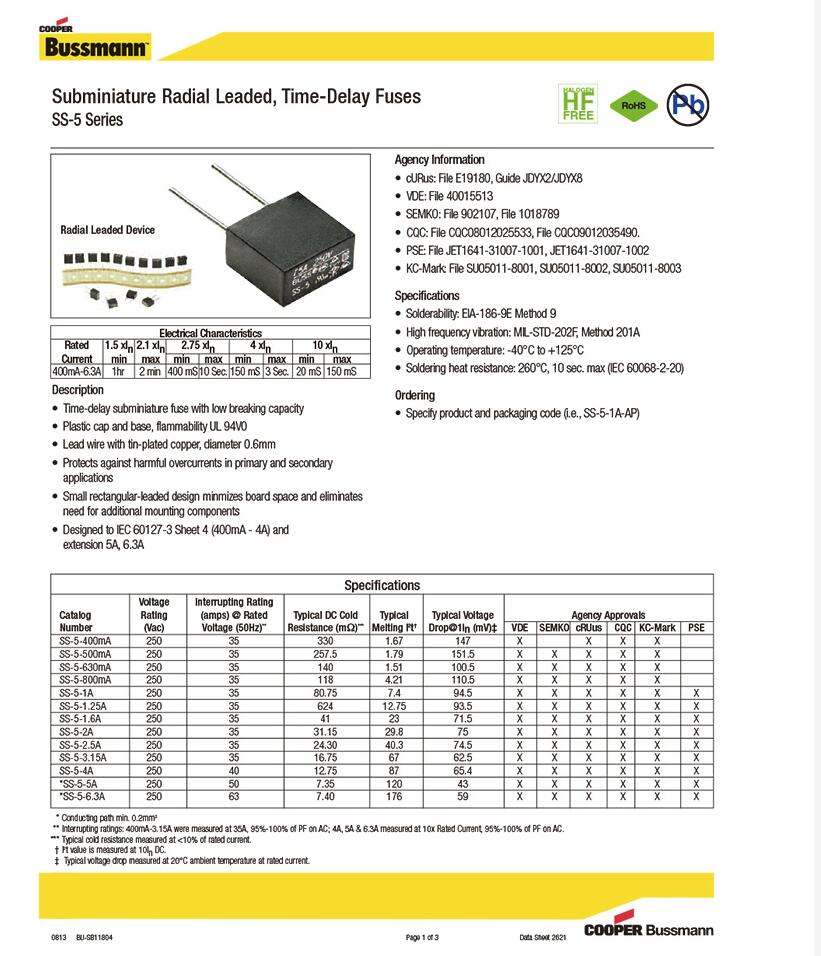 產品名稱: SS-5-1A-AP 方形保險絲 塑封式保險絲