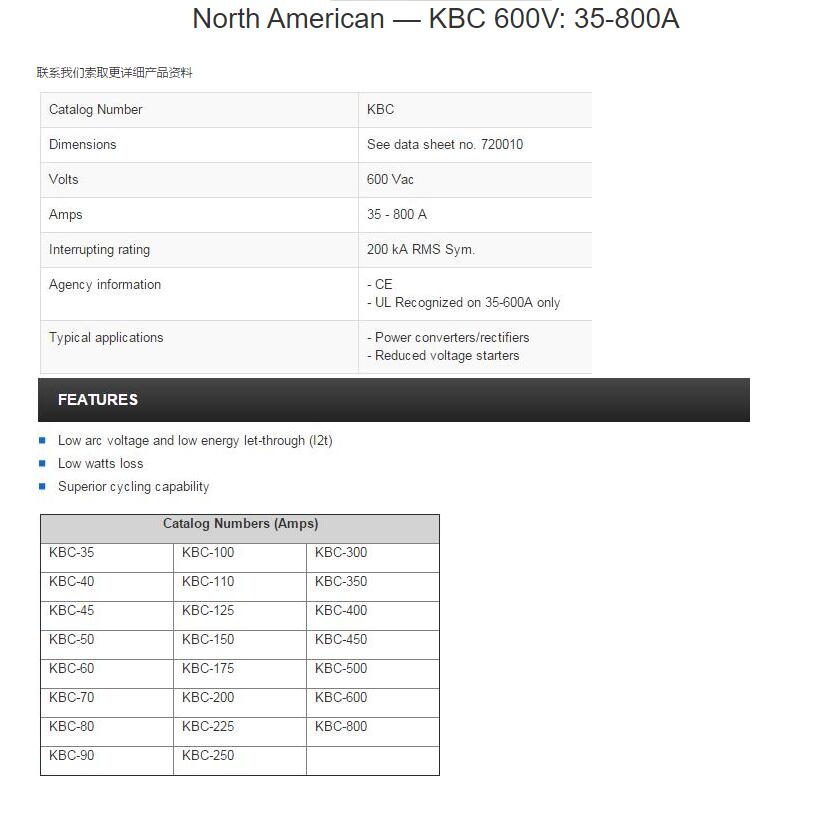 產品名稱: North American — KBC 600V: 35-800A