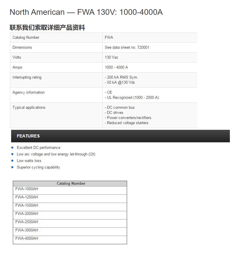 產品名稱: FWA 130V: 1000-4000A快速熔斷器