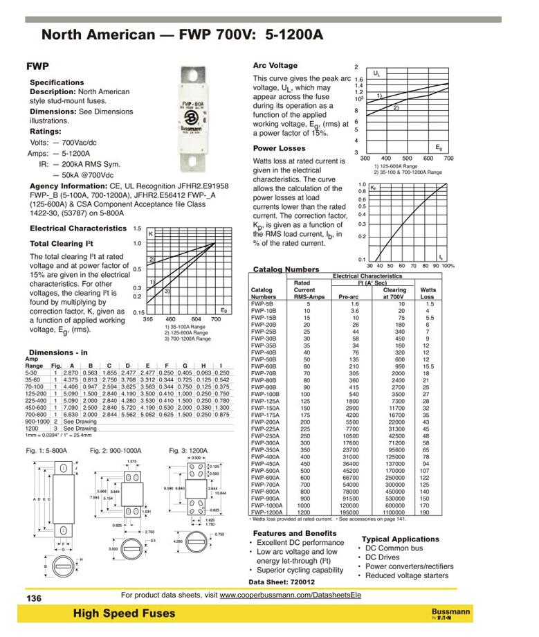 產品名稱: BUSSMANN FWP-125A 700Vacdc熔斷器