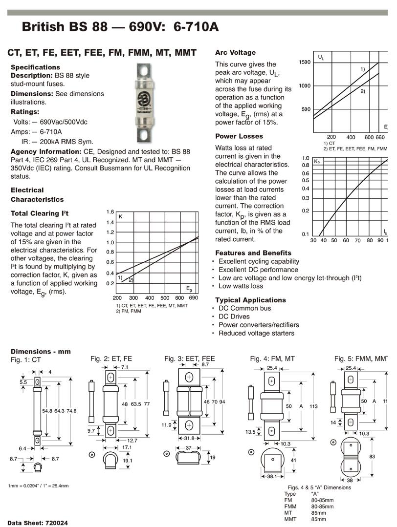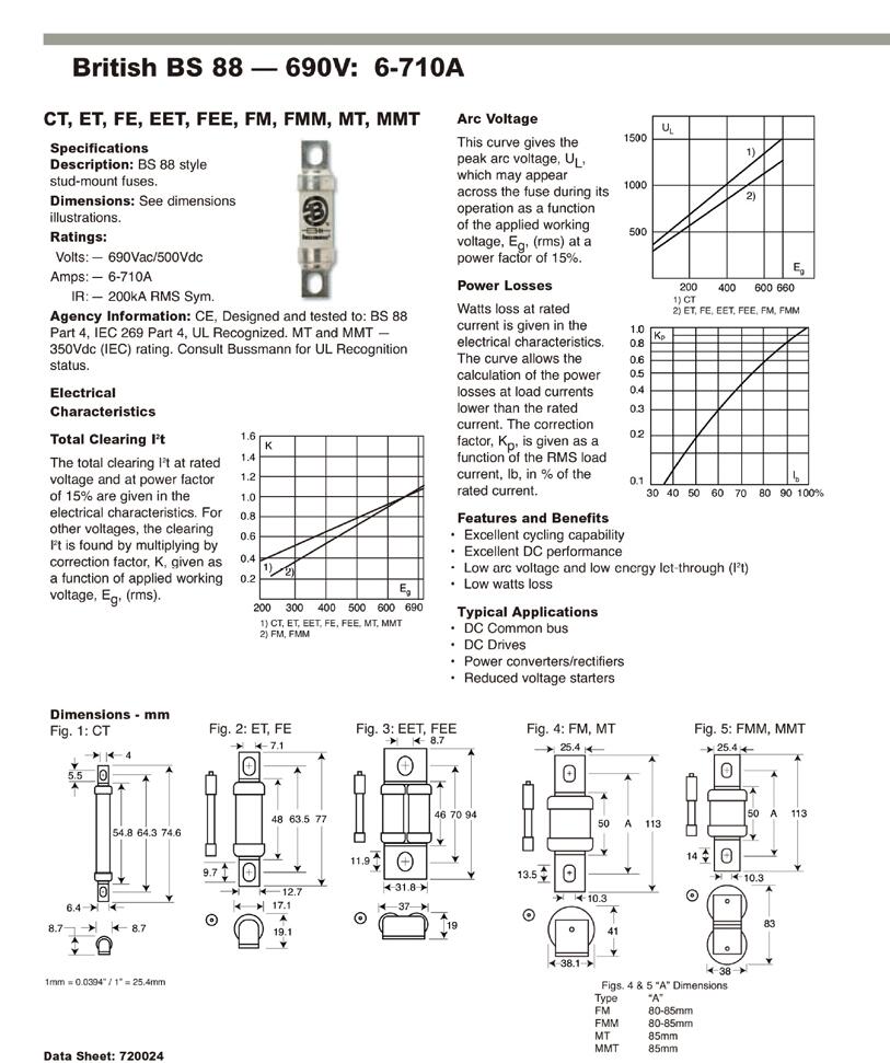 產品名稱: BUSSMANN BS88 35FE 35A690V熔斷器