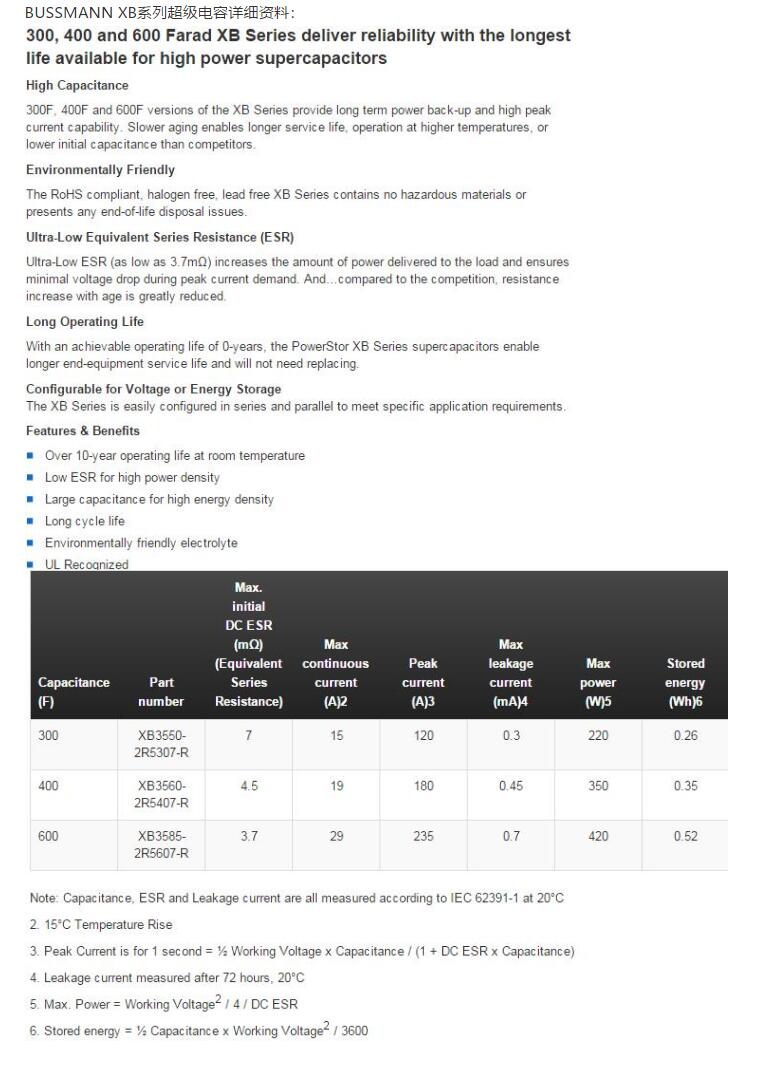 產品名稱: BUSSMANN XB系列超級電容