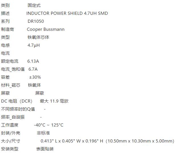 產(chǎn)品名稱: BUSSMANN DR1050-4R7-R 電感