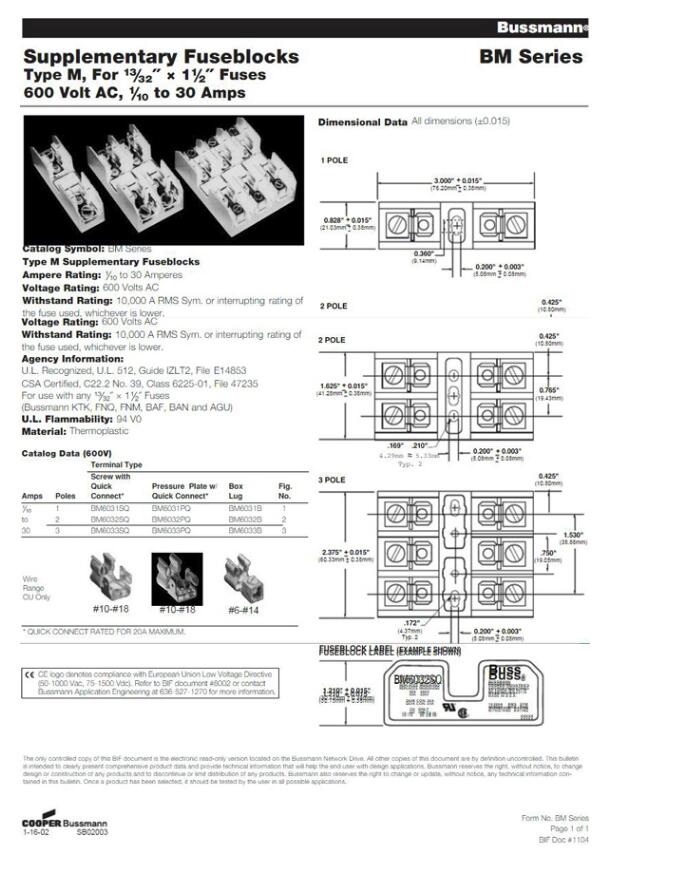 產品名稱: BUSSMANN BM系列熔斷器座