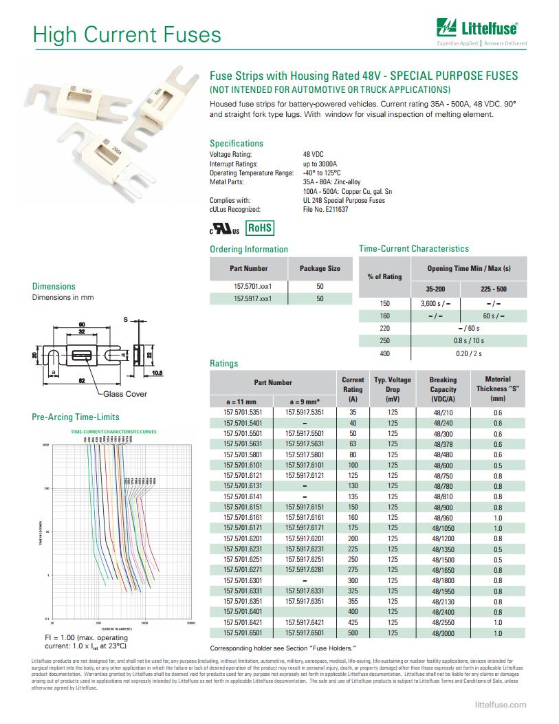 簡述: Fuse Strips with Housing 48V 系列 - 48V帶卡箍片狀保險絲 - 特殊用途保險絲