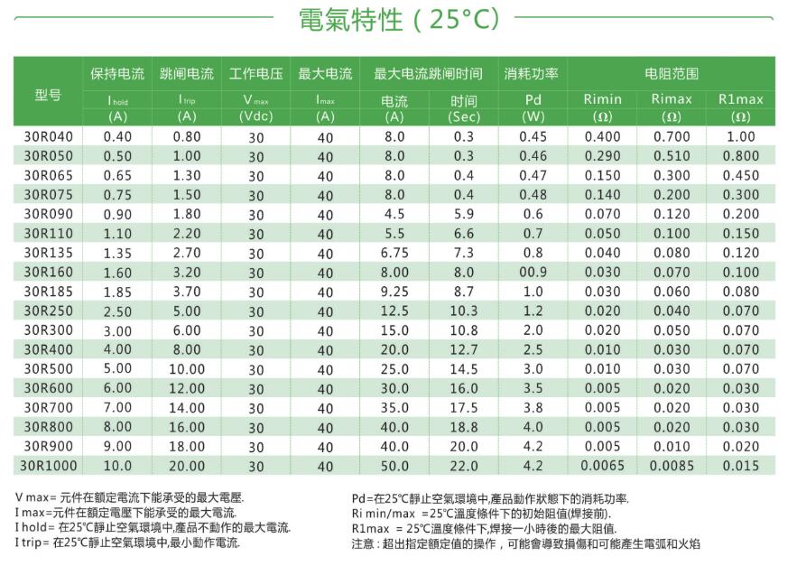 產品名稱: 30V自恢復保險絲