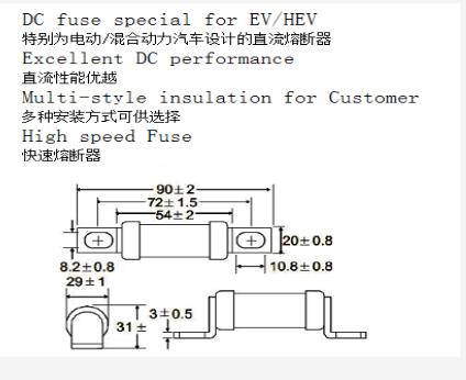 簡(jiǎn)述: DC fuse special for EV/HEV 特別為電動(dòng)/混合動(dòng)力汽車設(shè)計(jì)的直流熔斷器
