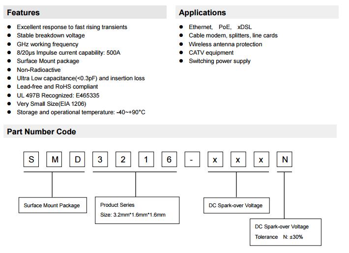 產品名稱: SMD3216系列陶瓷氣體放電管