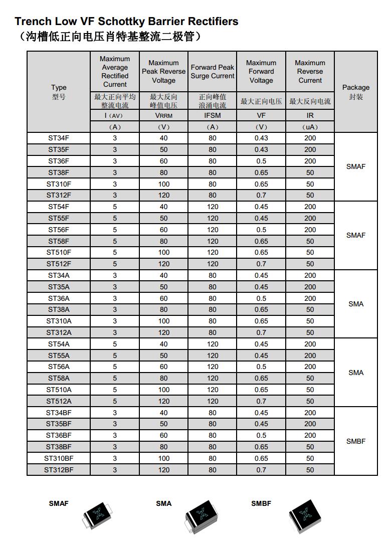 簡述: 溝槽低正向電壓肖特基整流二極管