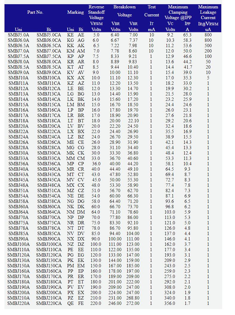 產品名稱: 瞬態抑制器二極管TVS Diode