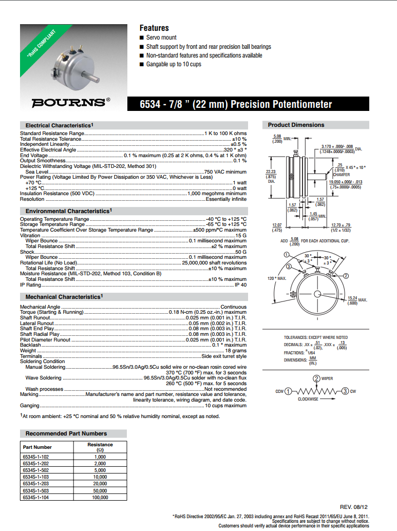 簡(jiǎn)述: BOURNS單轉(zhuǎn)型精密電位器6534