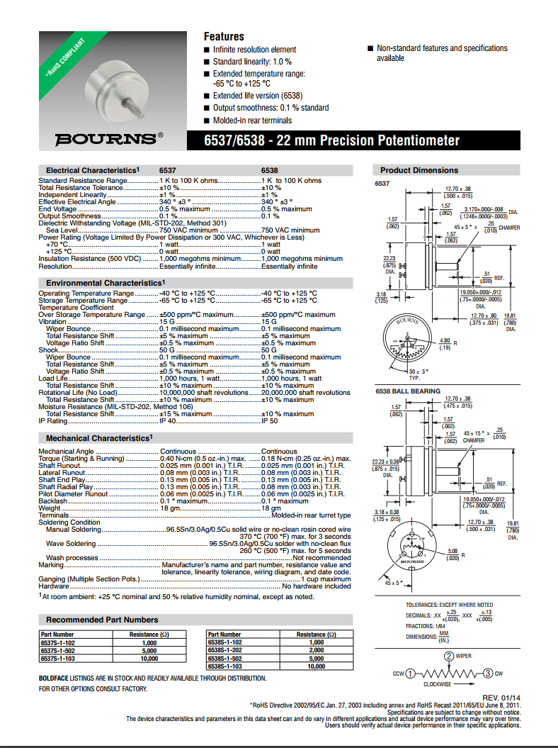 產(chǎn)品名稱: BOURNS單轉(zhuǎn)型精密電位器6537/6538