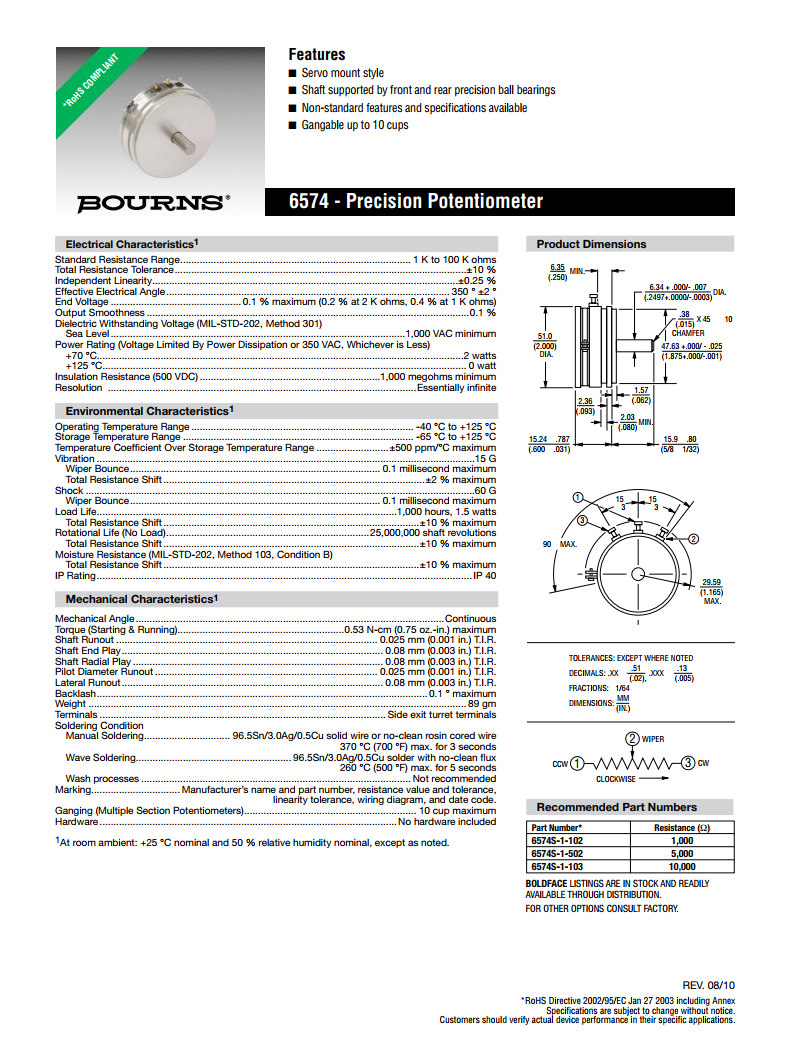 產(chǎn)品名稱: BOURNS單轉(zhuǎn)型精密電位器6574