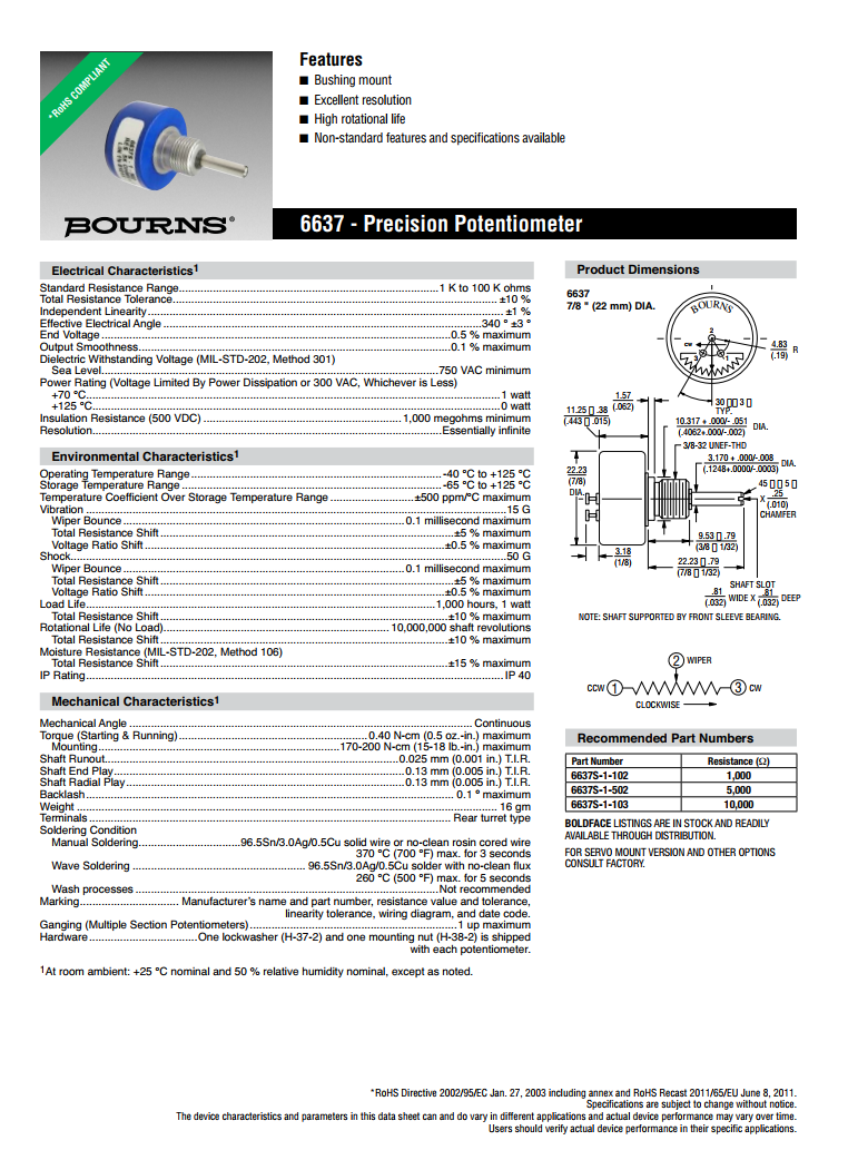 簡(jiǎn)述: BOURNS單轉(zhuǎn)型精密電位器6637