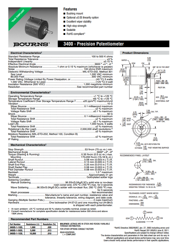 簡述: BOURNS多轉型精密電位器3400