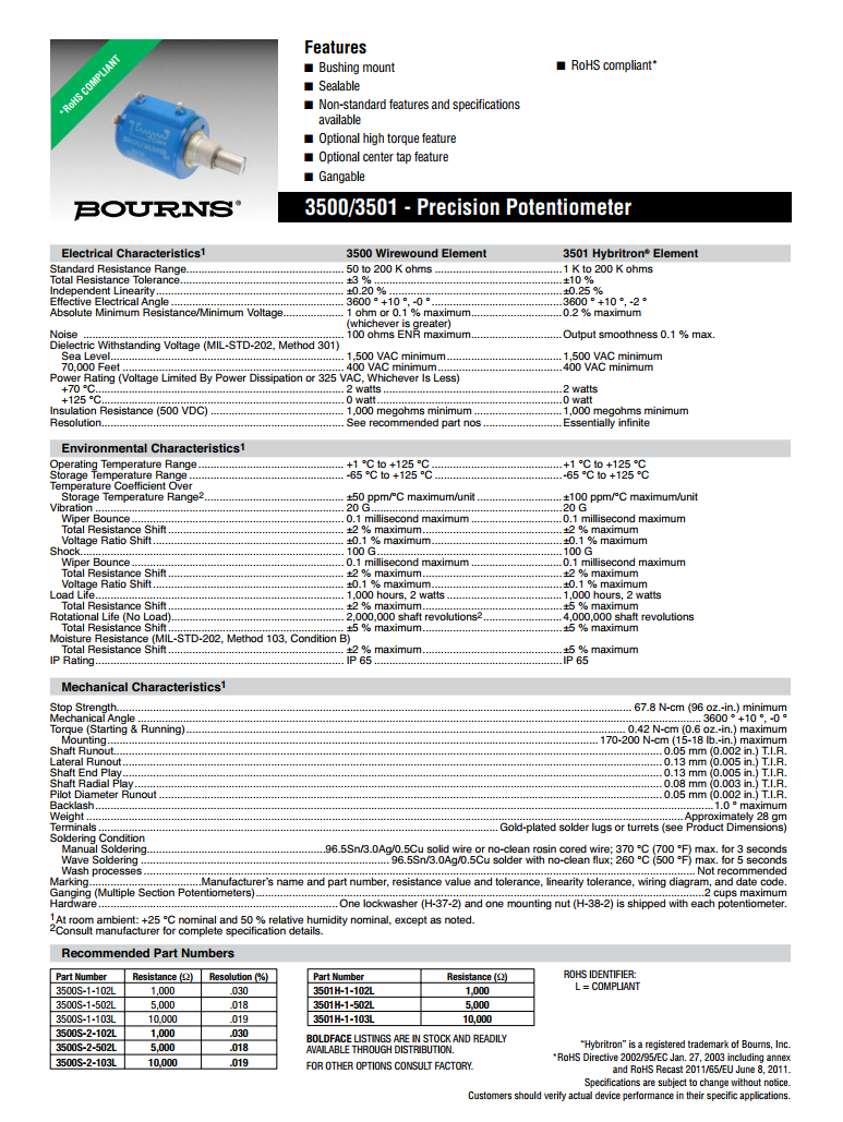 產品名稱: BOURNS多轉型精密電位器3500/3501