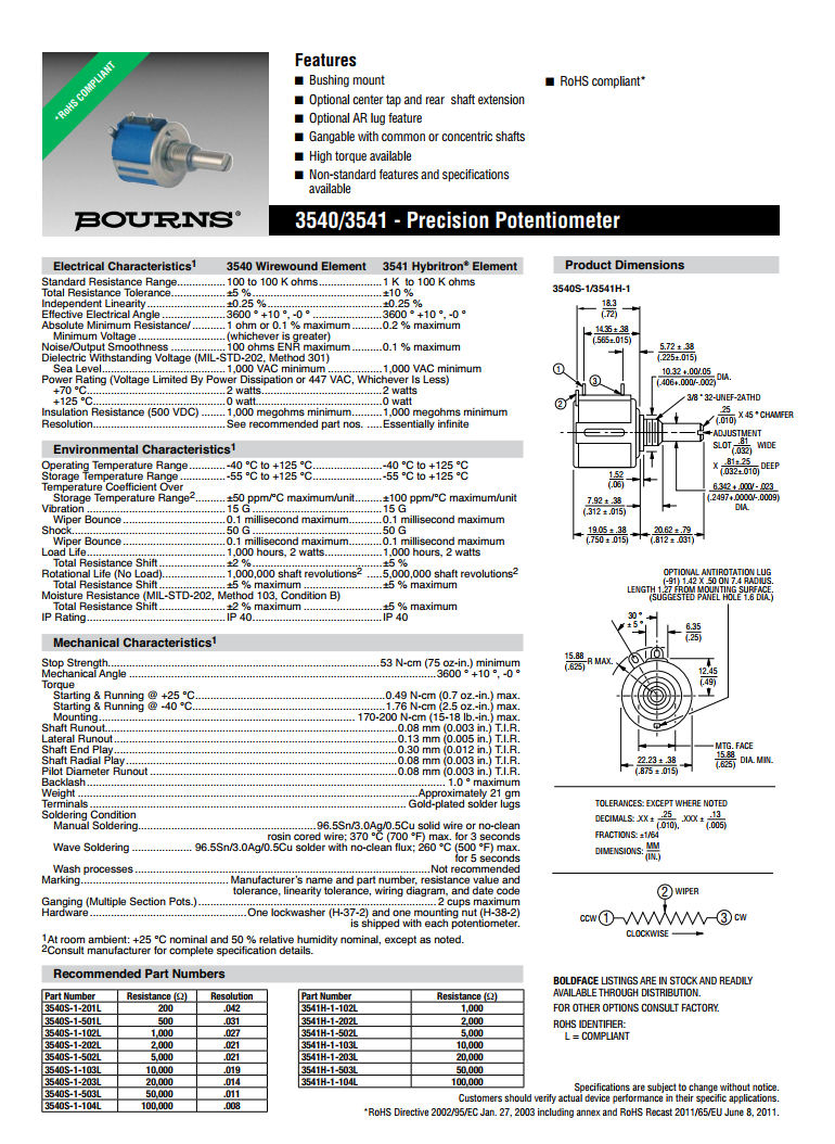 簡(jiǎn)述: BOURNS多轉(zhuǎn)型精密電位器3540/3541
