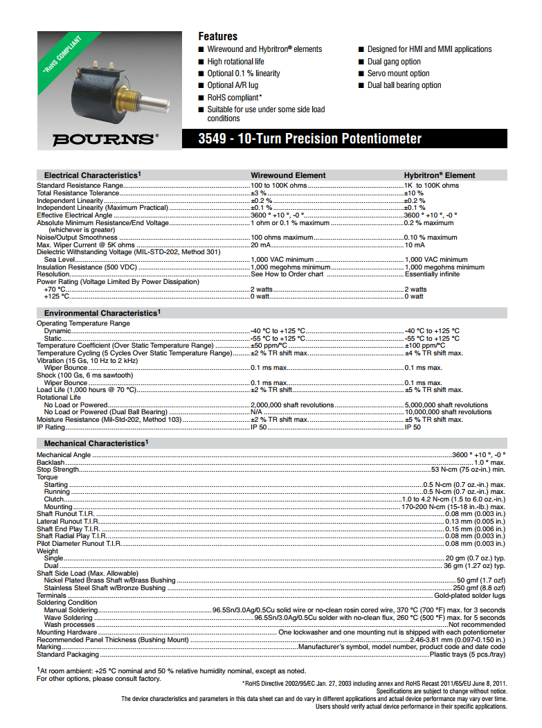 簡述: BOURNS多轉型精密電位器3549