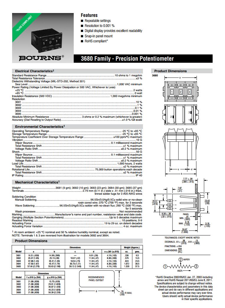 簡述: BOURNS多轉(zhuǎn)型精密電位器3680 Series
