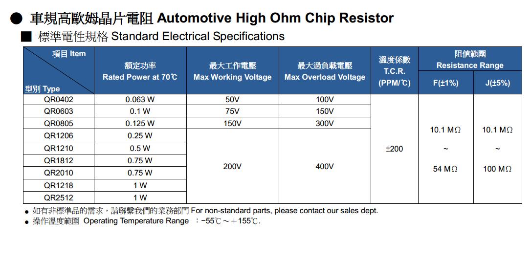 簡述: 車規(guī)高歐姆電阻,車規(guī)搞歐姆晶片電阻