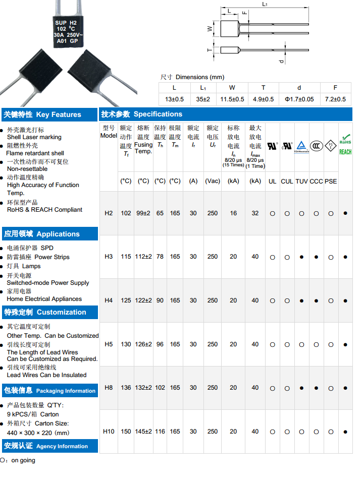產(chǎn)品名稱: 30A方形溫度保險(xiǎn)絲