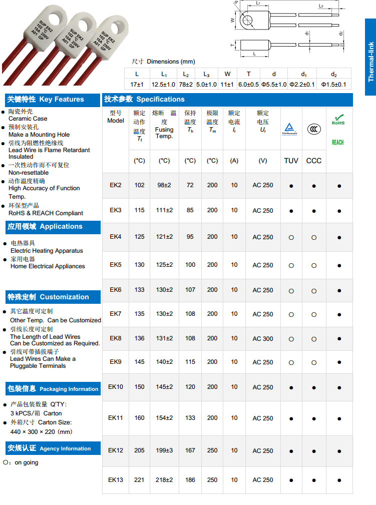 產品名稱: 10A 陶瓷溫度保險絲