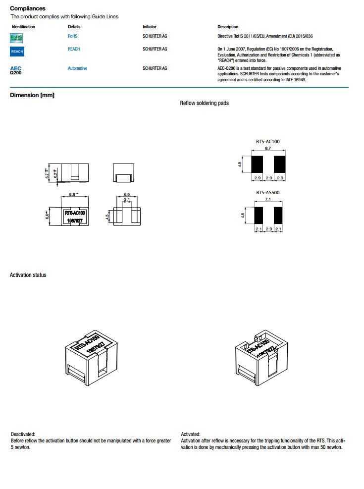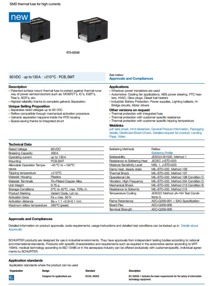 簡述: RTS貼片溫度保險絲,貼片溫度保險絲