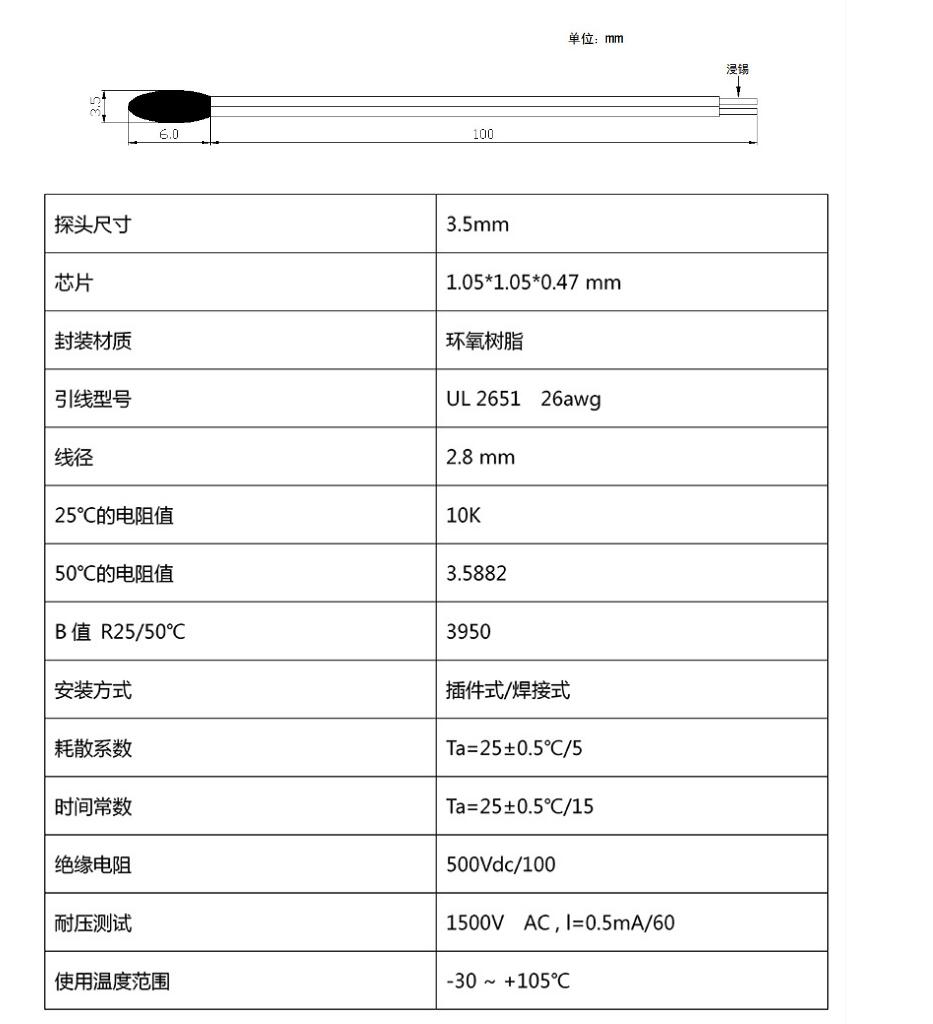 產品名稱: ntc熱敏電阻 CWF52小皮線 鋰電池保護板常用電阻保護