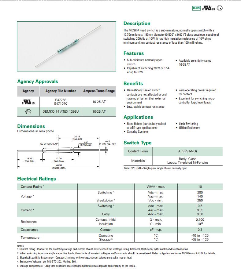 產品名稱: MDSR-7 系列 - 12.7mm磁簧開關