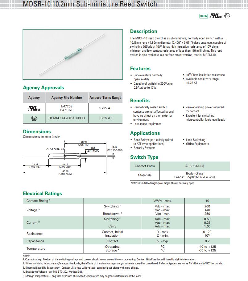 產品名稱: MDSR-10 系列 - 10.2mm磁簧開關