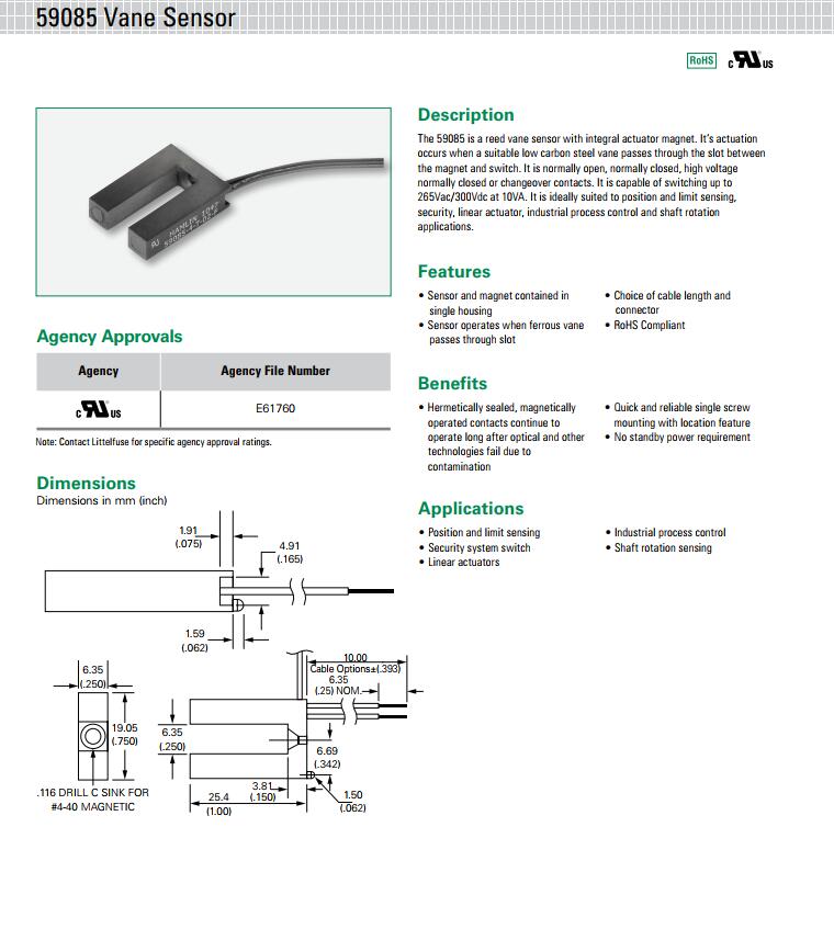 產(chǎn)品名稱: 59085 系列 - 葉片磁簧傳感器