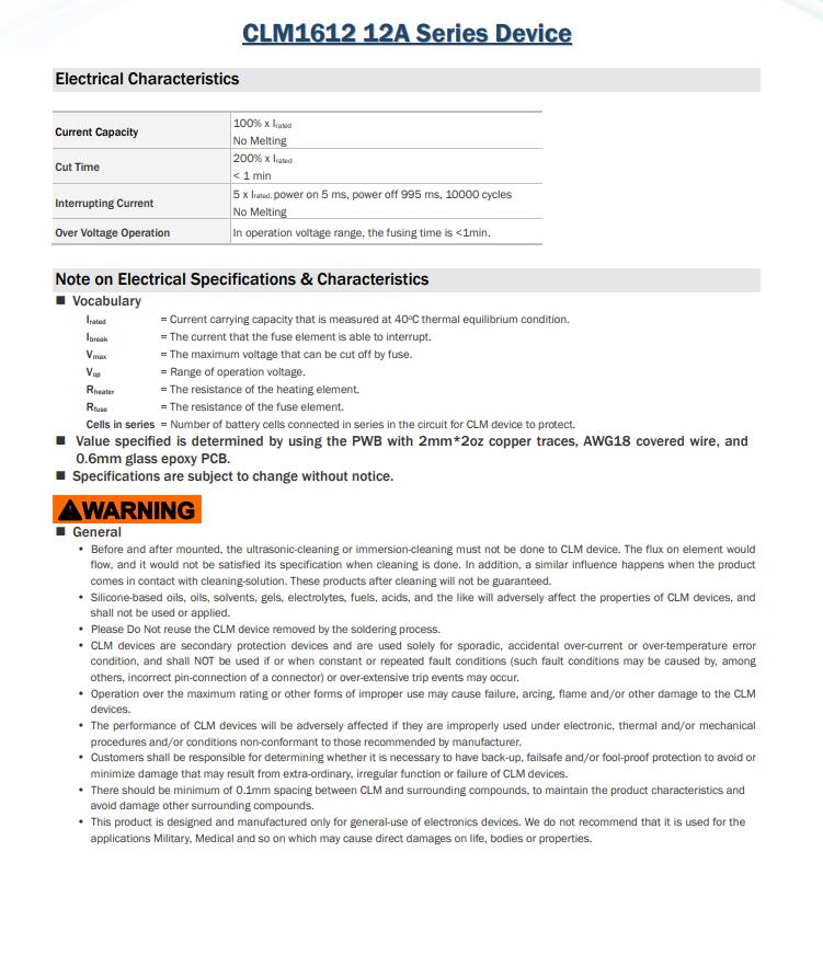 簡述: CLM1612 12A Series Device 三端保險絲